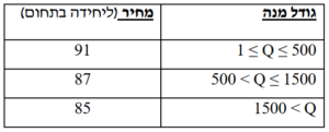 ספק א' הציע לתת הנחה לכל הכמות לפי המפתח הבא: